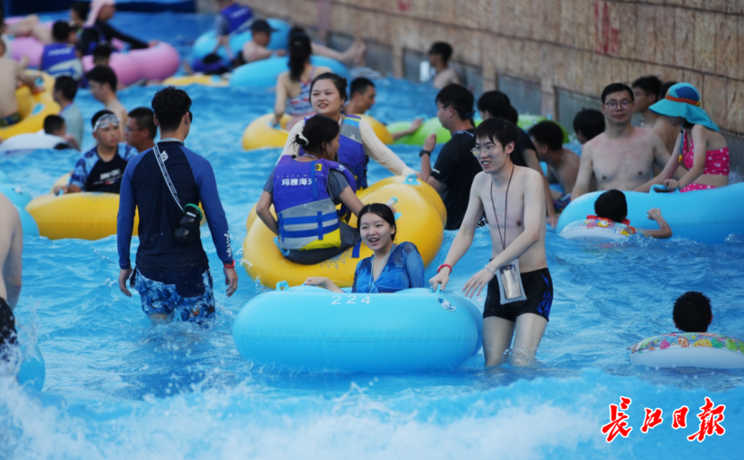 午后,位于东湖北岸的玛雅海滩水公园,已是人声鼎沸。巨大的“玛雅水寨”成为欢乐的中心,无论是大人小孩都在刺激的滑道和翻斗桶下尖叫穿梭,玩乐中激起的巨大水花引来阵阵欢笑。加勒比冲浪区,人造海浪一波波涌来,游客们随着节奏跳跃、漂浮,仿佛置身热带海洋。年轻人偏爱刺激“大喇叭”和“垂直滑道”等游乐项目,高速俯冲带来的失重感与瞬间入水的清凉,交织成夏日最畅快的释放。园区内,彩色泳衣、颜色各异的泳圈与湛蓝的水面构成一幅活力四射的画卷。