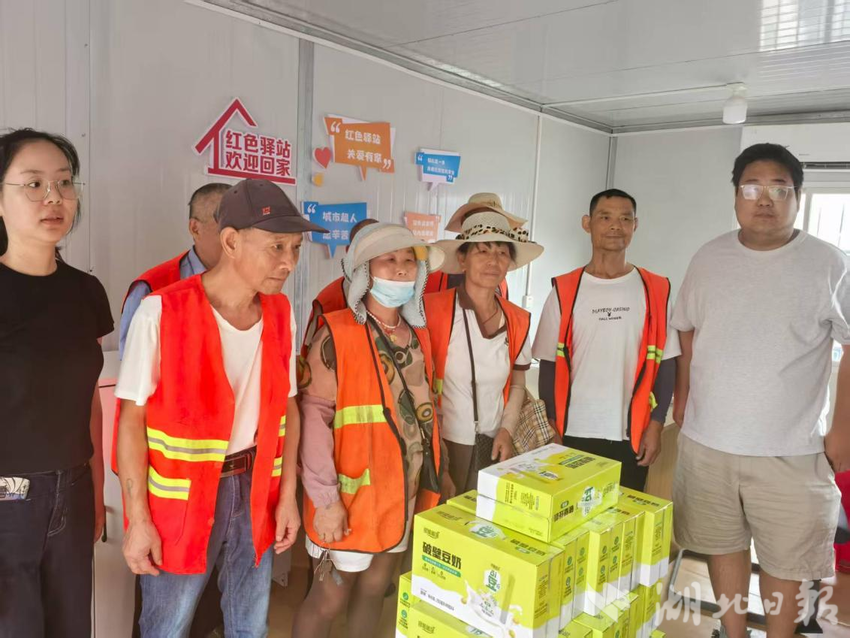 此次活动中,社区送出了三十箱由红十字会捐赠的银鹭豆奶。活动现场,工作人员满怀关切地询问了环卫工人们的工作状况,提醒他们在高温天气下一定要做好防暑降温措施,科学合理地安排工作时间,切实保障自身的身体健康。