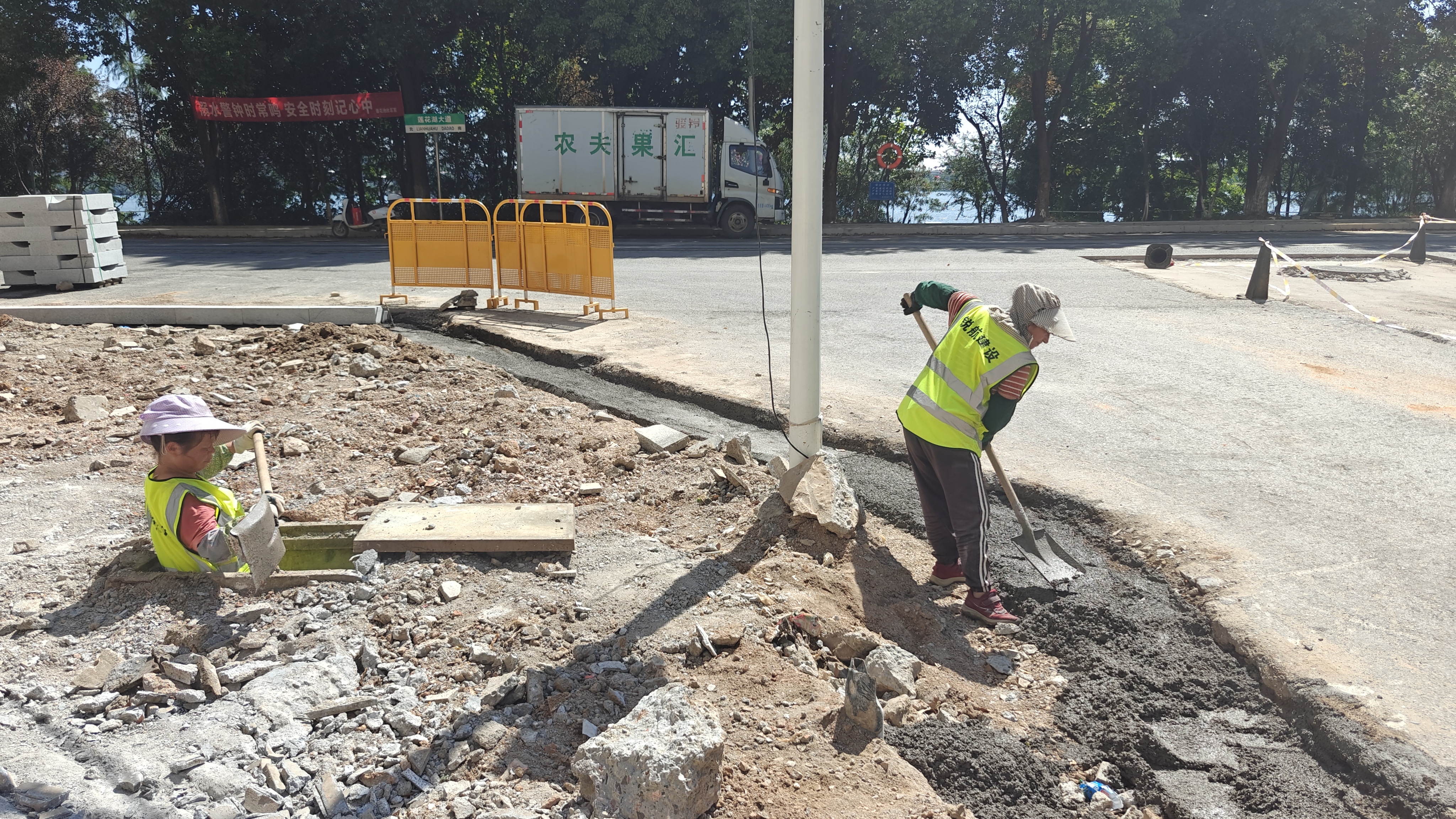 “这天气,砖头烫手,鞋底发烫!”湖北锐航建设工程有限公司工人游照群一边擦汗一边说,“但工期紧,我们早点修好,大家走路更安全,下雨排水也更顺畅。咬咬牙,早点干完!”