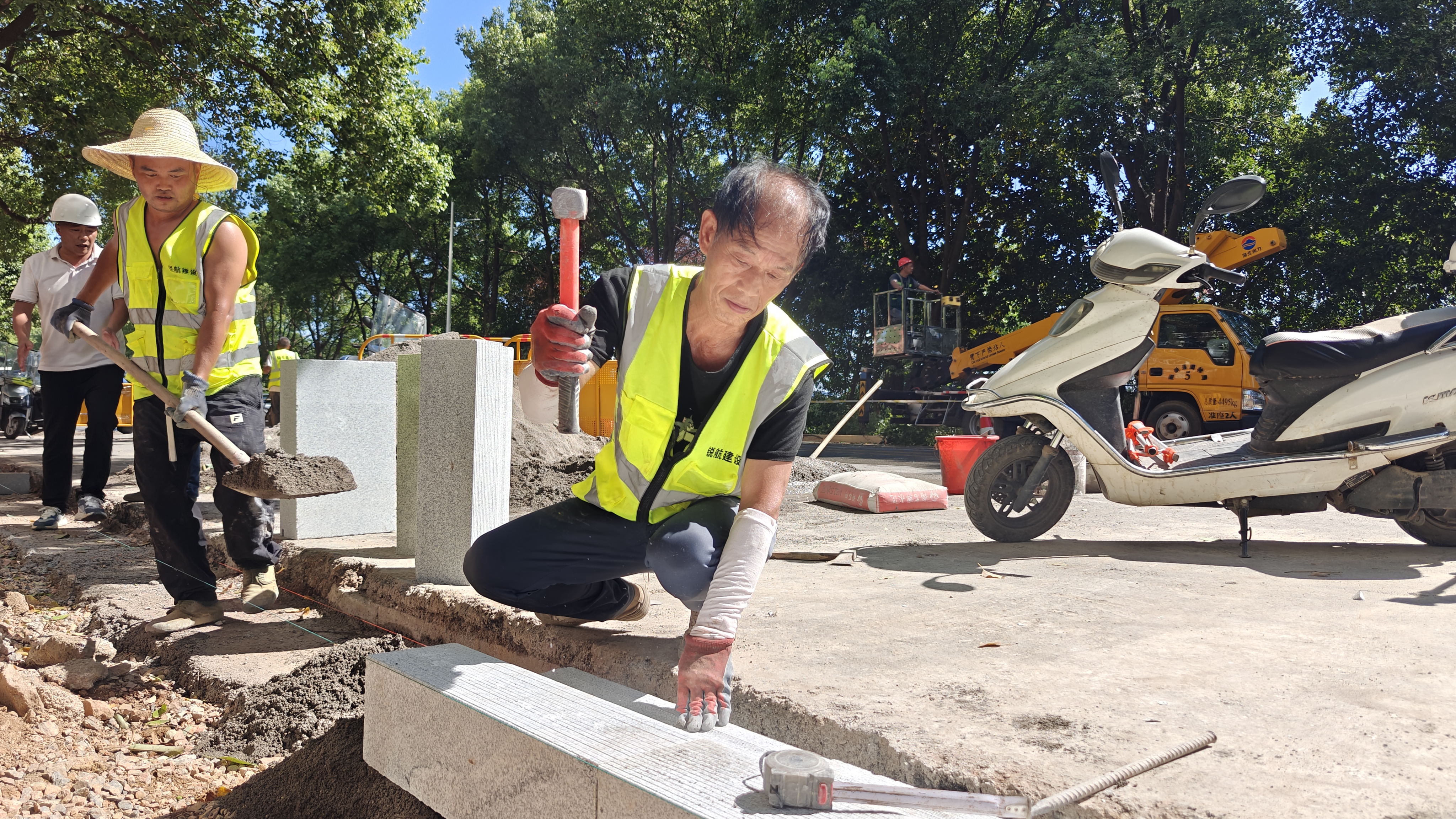 “这天气,砖头烫手,鞋底发烫!”湖北锐航建设工程有限公司工人游照群一边擦汗一边说,“但工期紧,我们早点修好,大家走路更安全,下雨排水也更顺畅。咬咬牙,早点干完!”