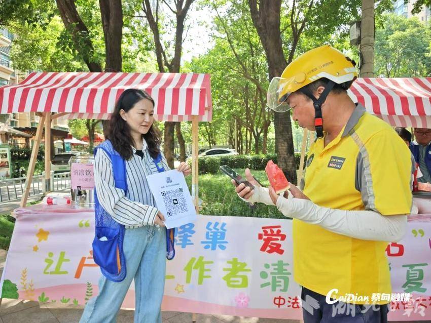活动中,社区不仅为新就业群体准备了水杯、小风扇等实用物品,还为户外工作者送上绿豆汤、西瓜等解暑物资。工作人员向大家发放《流动网格员工作手册》,手册明确了工作内容、问题反馈流程及与居民沟通技巧。