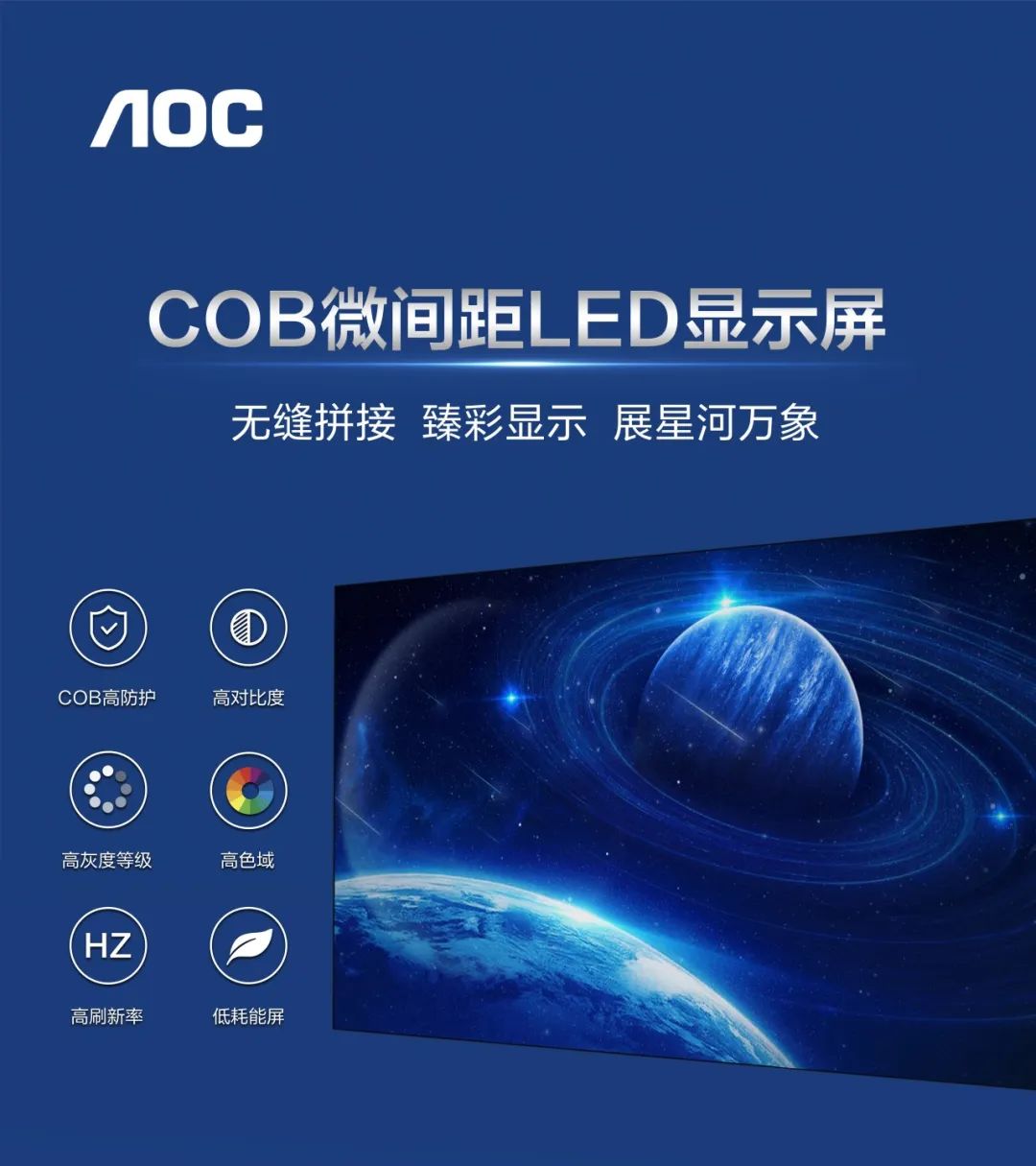 作为室内全彩COB LED显示屏的革新之作,AOC COB LED LK系列采用倒装芯片+COB封装技术,大幅提升了产品的可靠性和使用寿命。其P0.4-P1.8mm超小间距设计与独特的防眩光雾面涂层技术,使其在画质细腻度与环境适应性上领先行业。目前,该系列已应用于多地政企展厅、高端商业场所及指挥中心等项目,为业内树立了COB LED显示屏的新标杆。