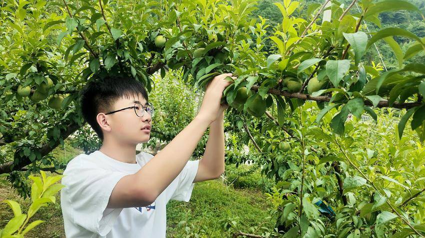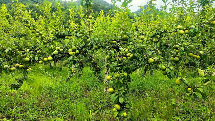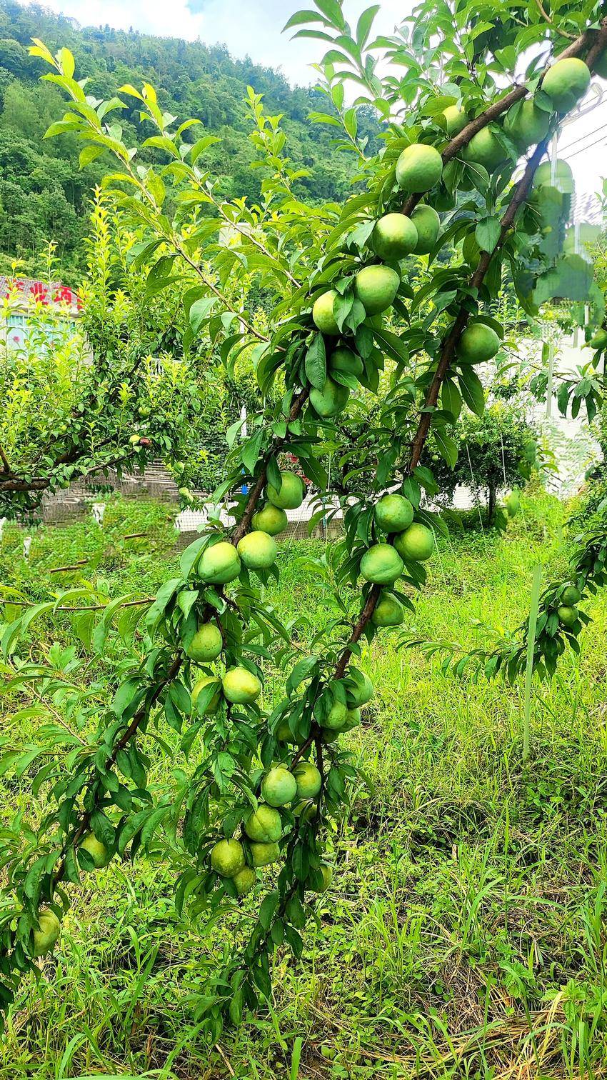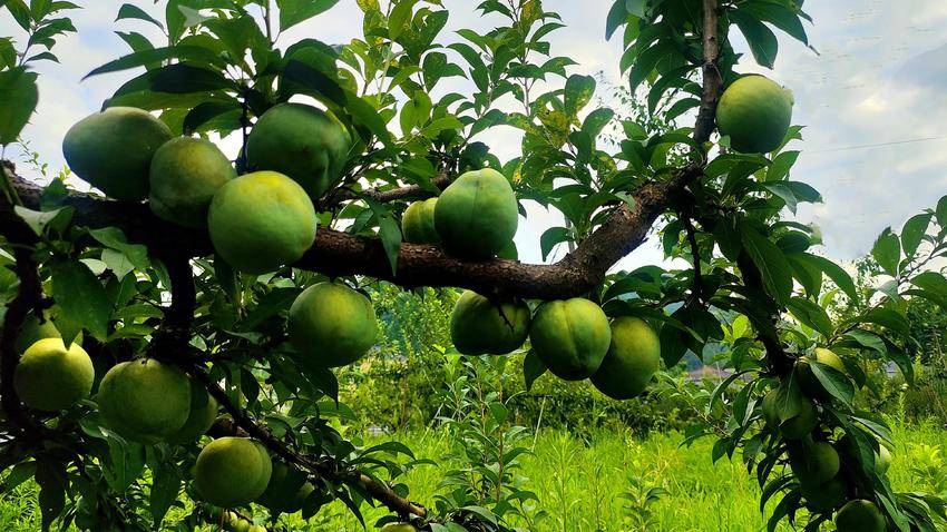 乒乓球大小的李子沉甸甸地挂满枝头,像是大自然精心雕琢的绿宝石。
