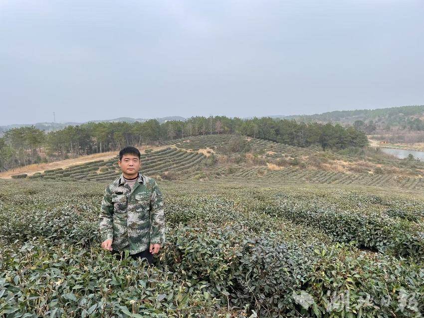 7月28日,在武汉市新洲区李集街春光村,百亩黄金茶香在山间静静流淌,盛夏阳光照射下,处于修养期的茶叶依旧展现出一片勃勃生机。李彬蹲在茶垄中,拨开枝叶仔细检查叶面情况:“夏季高温高湿,是病虫害防控的关键阶段。”这位33岁的年轻退伍军人,带着军旅历练出的坚韧和对故土的热爱,毅然投身家乡茶产业培育壮大中,带动村民脱贫致富。