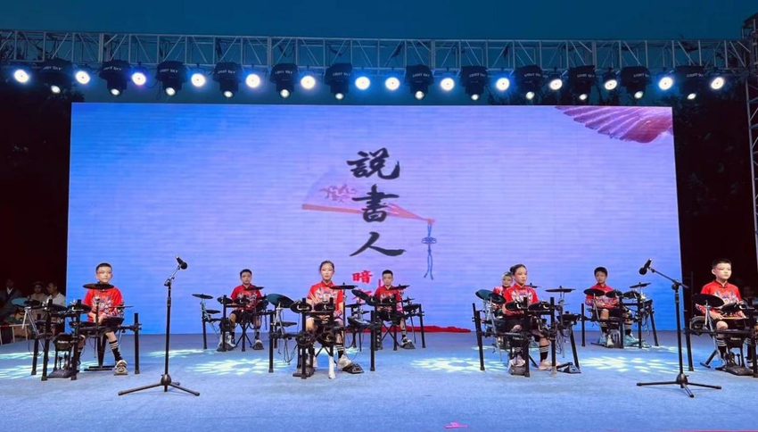 孝南区乐嘟艺术团的少年鼓手们以铿锵有力的架子鼓开场,密集的节奏如说书人拍响的惊堂木,瞬间点燃全场!传统曲艺的叙事感与现代器乐的张力完美融合,观众不禁随着鼓点跺脚摇摆,直呼“过瘾”!