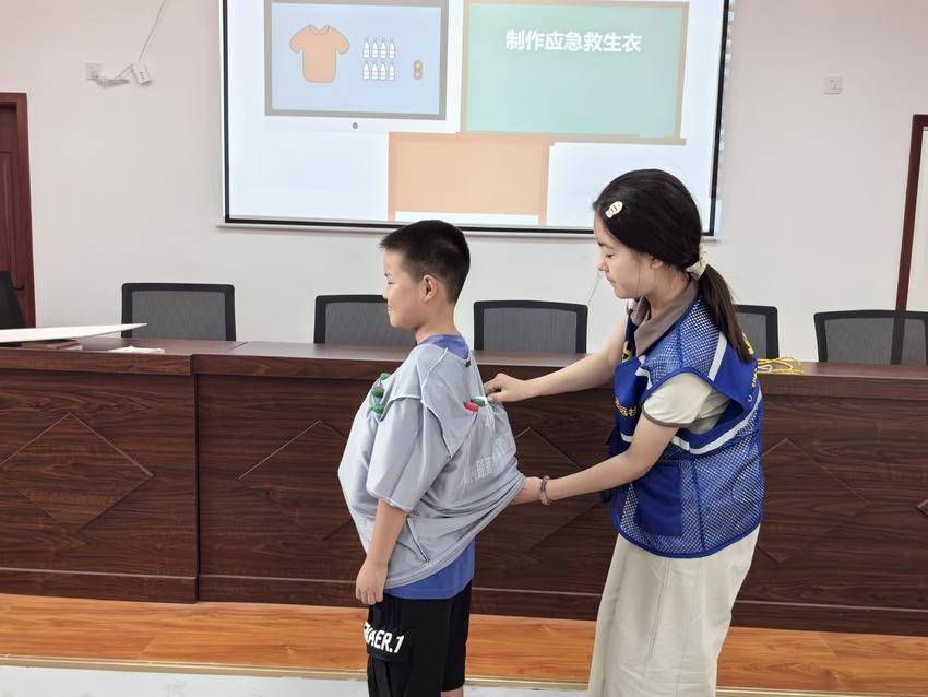 讲火灾和地震时,社工播放了动画短片,用孩子能看懂的画面演示“弯腰捂口鼻”“躲在桌子下”等逃生技巧;说到烧烫伤,大家一起在教室模拟“找危险源”——“饮水机出水口不能碰”“刚煮好的汤要放远一点”,孩子们你一言我一语,还跟着社工记住了“冲、脱、泡、盖、送”的急救口诀;防溺水和交通安全环节,志愿者分享了身边的真实案例,没有严厉的说教,却让孩子们牢牢记住了“不私自下水”“红灯停绿灯行”的重要性。