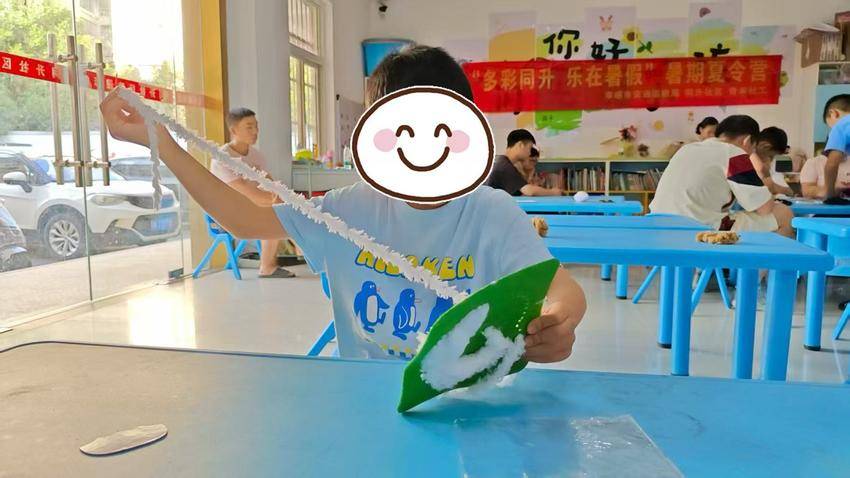 最令人期待的毛线画制作环节到来了。社工为每个孩子分发了底板、毛线、胶水、剪刀等材料,并详细讲解了制作步骤。孩子们先在底板上用毛线勾勒出自己喜欢的图案轮廓,有可爱的小兔子、鲜艳的花朵、圆圆的太阳等。然后,他们拿起不同颜色的毛线,小心翼翼地用针将毛线填满图案,一针一线地完成自己的作品。过程中,孩子们相互交流,互相帮助,现场充满了欢声笑语。