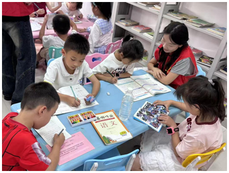 这个夏天,一群年轻的志愿者带着行囊与热忱走进毛陈镇图书馆,他们来自不同城市的院校,却怀揣着同一个心愿:要为这些“田野里的小苗”撑起一片爱的天空。就这样,爱心托管班在大家的期盼中落地,成了志愿红与乡土情交织的“成长驿站”。