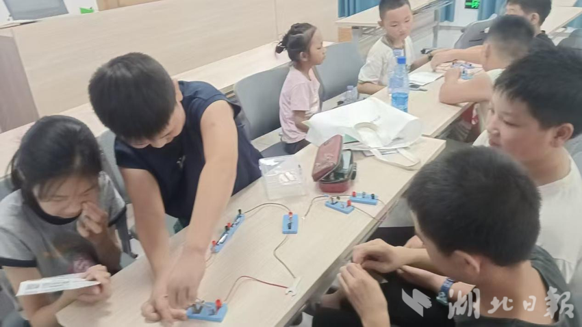 湖北日报客户端讯(通讯员王淑平)7月31日,庙头镇黄家咀社区暑期爱心托管班内,心连心社工与大学生志愿者携手开展“小小课堂 大大智慧”科学实践活动,以趣味实验激发孩子们的探索热情,在动手操作中播种科学种子。