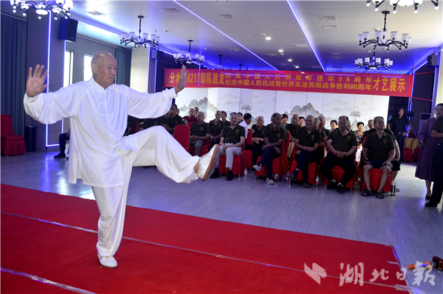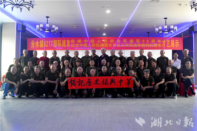 湖北日报客户端讯(通讯员李国新)8月1日,原8217部队48名分水籍退伍老兵齐聚天香大酒店,以二胡独奏、太极展演、军歌合唱等才艺表演,庆祝中国人民解放军建军98周年、纪念中国人民抗日战争暨世界反法西斯战争胜利80周年。活动现场,老兵们用艺术诠释“听党指挥、能打胜仗、作风优良”的军魂誓言,展现“退役不褪色”的赤诚担当。