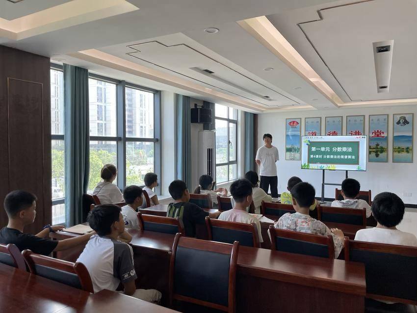 湖北日报客户端讯(通讯员王静)为让辖区青少年度过充实有意义的暑假,有效破解数学学习中的“拦路虎”,8月4日,襄阳高新区团山镇团山社区开展“暑期未成年人思想道德建设教育之学习篇”活动,特邀大学生志愿者聚焦分数乘法这一数学难点,为孩子们带来专题辅导。