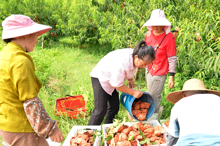 果园丰收季,几十个工人在果园里摘桃、装箱,说说笑笑的声音传得老远,那是我听过最动听的“丰收曲”。 转型的步子越迈越大。眼下,夏继红正推动“农业+文旅+教育”三产融合,规划建设田园民宿、研学基地等。