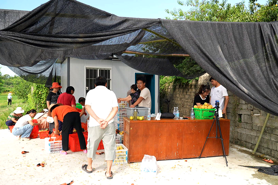 在政府的牵线下,武汉植物园专家团队成为她的“智囊团”。钟彩虹教授带着技术员住进村里,手把手教水肥一体化管理。如今,果子品质一年比一年好。为打开销路,这位70后“新农人”学起直播带货。