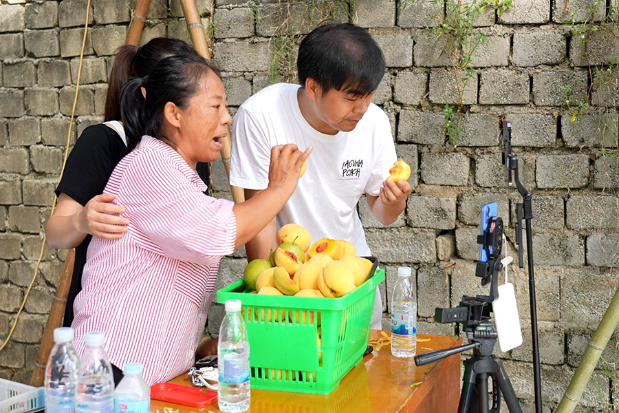 湖北枫杨小镇生态农业有限公司总经理夏继红:以前那个果子烂在地里卖不出去,现在在抖音一天我也能卖个几百单!2025年预计产出猕猴桃大概是20万斤、黄桃5万斤,苹果梨1.5万斤,线上销售额预计突破100万元。