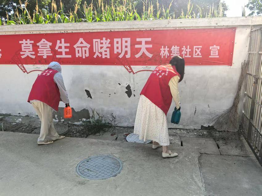 林集社区聚焦源头治理,打好环境“净化战”,将爱国卫生运动与灭蚊防蚊深度结合,组织社区干部、网格员及志愿者深入小区、背街小巷及角落,开展全方位环境治理,重点清理房前屋后、道路两侧的杂草杂物,铲除蚊虫栖息的“隐蔽角落”;针对缸、罐、盆、钵及废旧轮胎等易积水容器,进行“地毯式”排查与翻盆倒罐,彻底清除闲置容器中的积水,从根源上切断蚊虫繁殖链条。“以前墙角堆了些旧花盆,下雨就积水,现在清理得干干净净,心里也踏实多了。”看着焕然一新的院落,居民王阿姨满意地说。