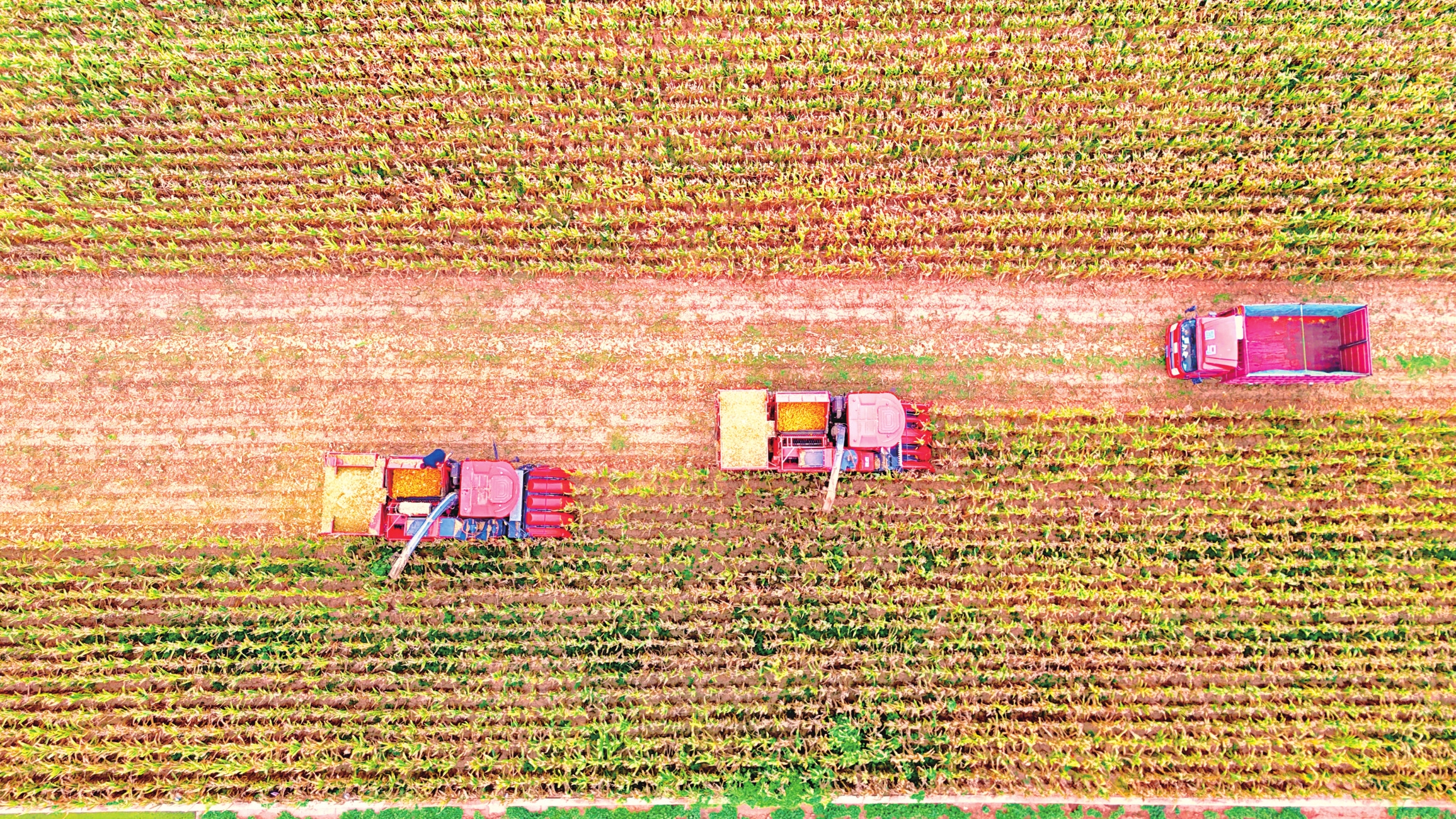 目前,该镇已投入200台收割机抢抓农时,预计8月底全面完成收割,玉米总产量可达3.4万吨。高效机械化的“双收”模式,在保障粮食丰产的同时,也为田野铺就了生态底色。