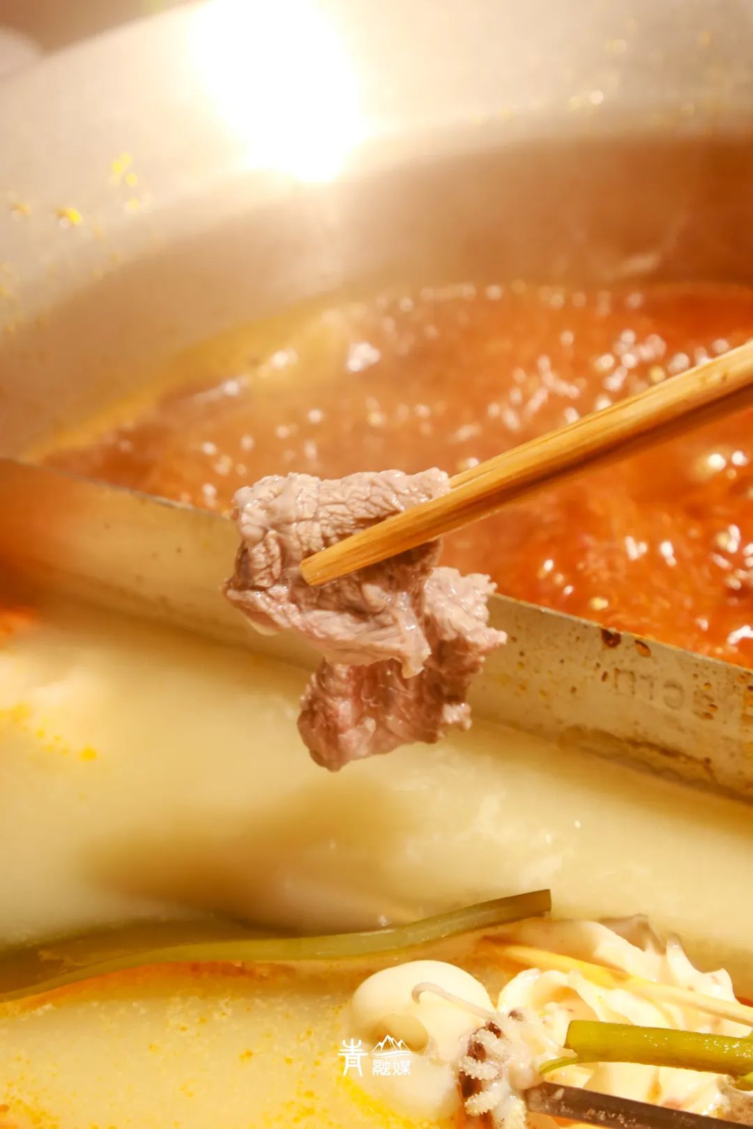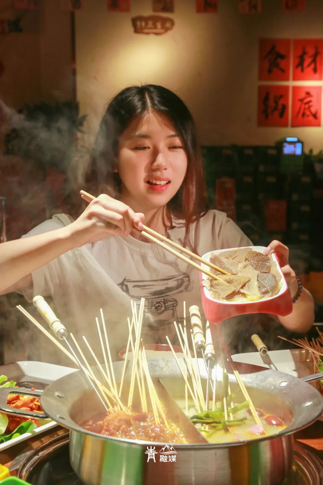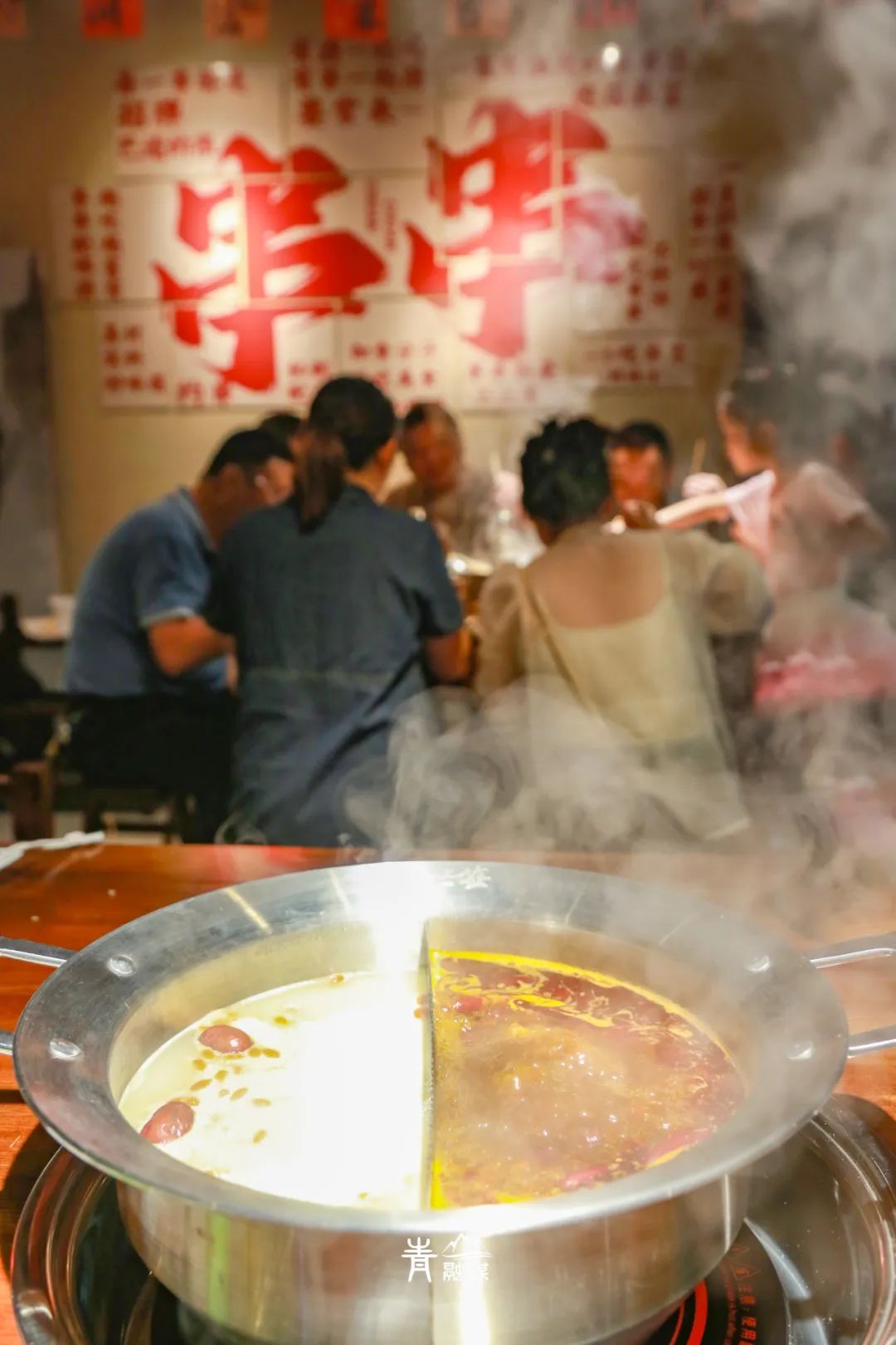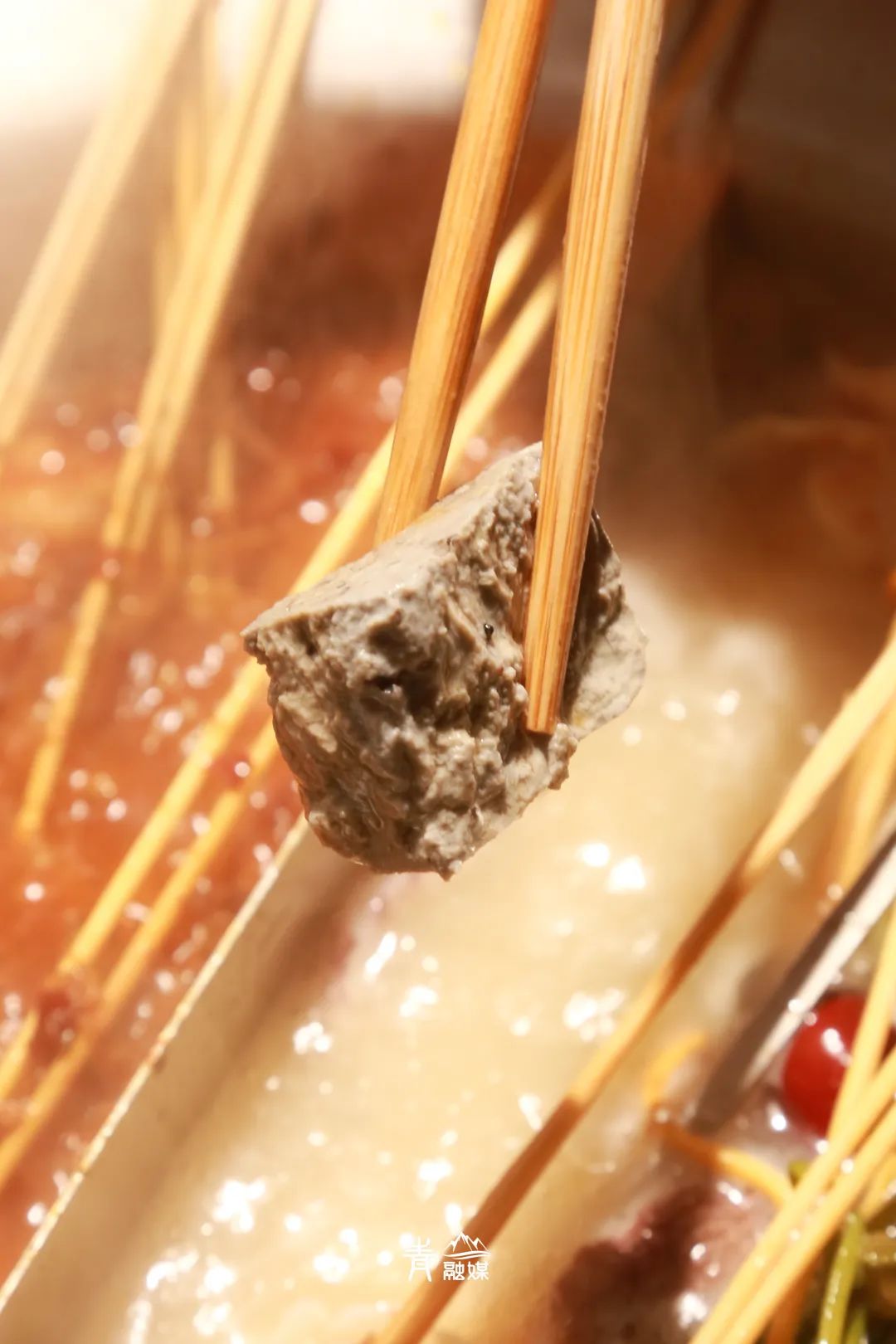 锅底则藏着更贴心的小巧思。那层翻滚的红油并非只是辣,而是以老鹰茶为原料精心熬制而成,让人吃得满头汗却不生虚火。在熬制锅底的牛油上,小江老板更舍得下功夫,牛油量超足,哪怕亏本,也要那一口最地道、最醇香的锅底。