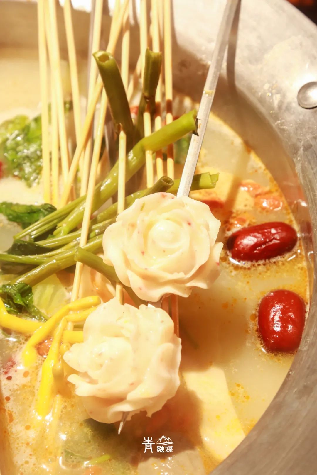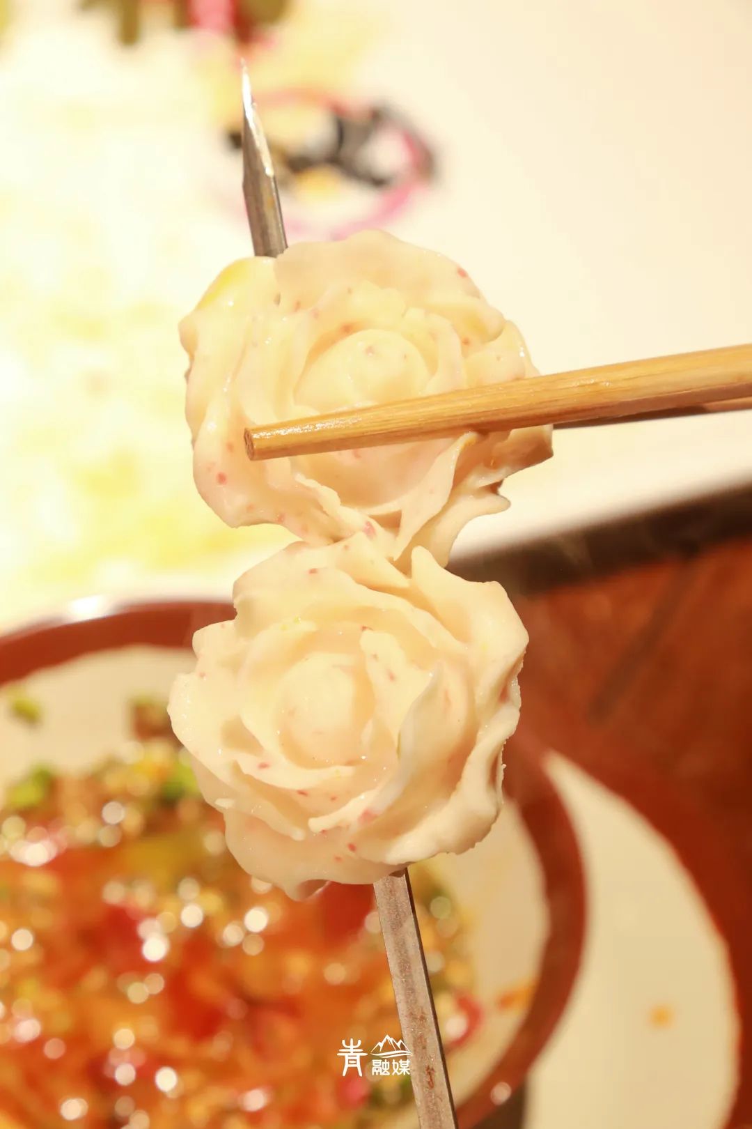 说起串串江湖里的“颜值担当”,那一定是鳕鱼玫瑰。食材雕刻成玫瑰花的形状,既美观大方又极具创意,让人不舍得吃。