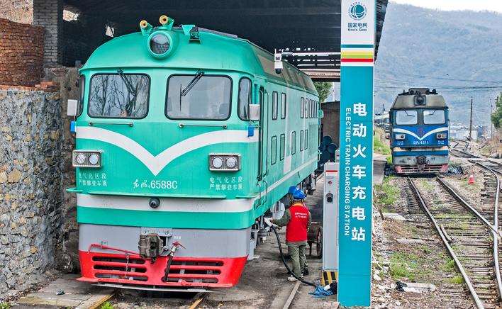 4月10日,宜都市松木坪镇,全省首台完成“油改电”重大升级的2160千瓦新能源动力火车头正式投运。 (刘曙松 黎文来 向沁雪 摄)