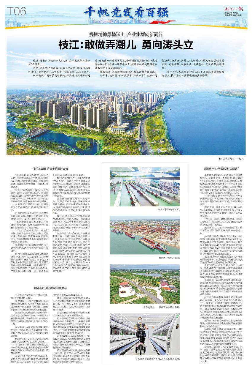 今年7月,在北京举行的2025年县域经济创新发展论坛上,枝江再次入围赛迪百强县市榜单。