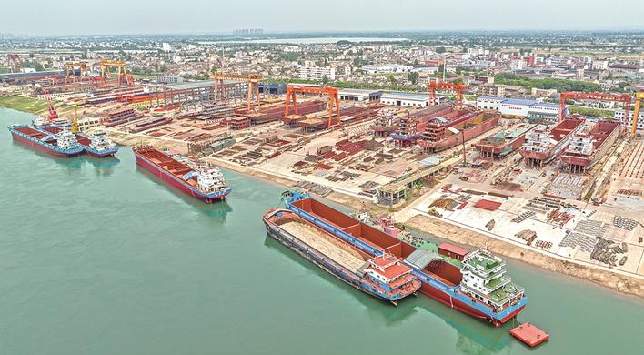 姚家港化工园的管道纵横处,产业升级之路不断延展;奥美医疗的无菌车间里,全球领先医用敷料生产线高速运转;长江之畔的造船平台上,新能源船舶建设图景与江面百舸争流交相辉映。