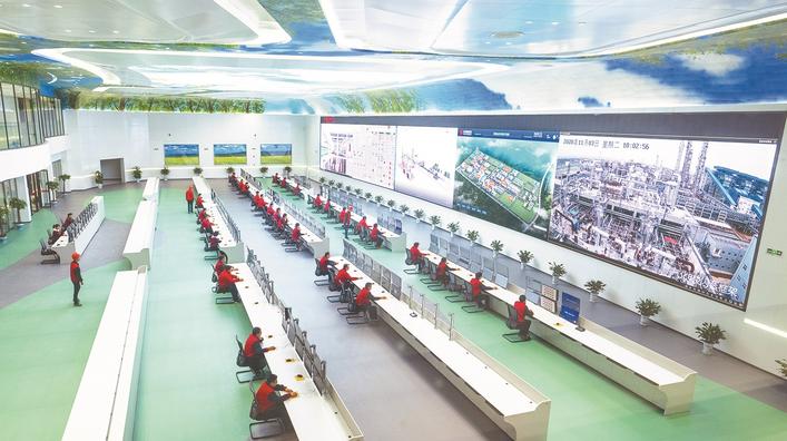 三宁化工5G智能工厂的中控室,是工厂的智慧“大脑”。