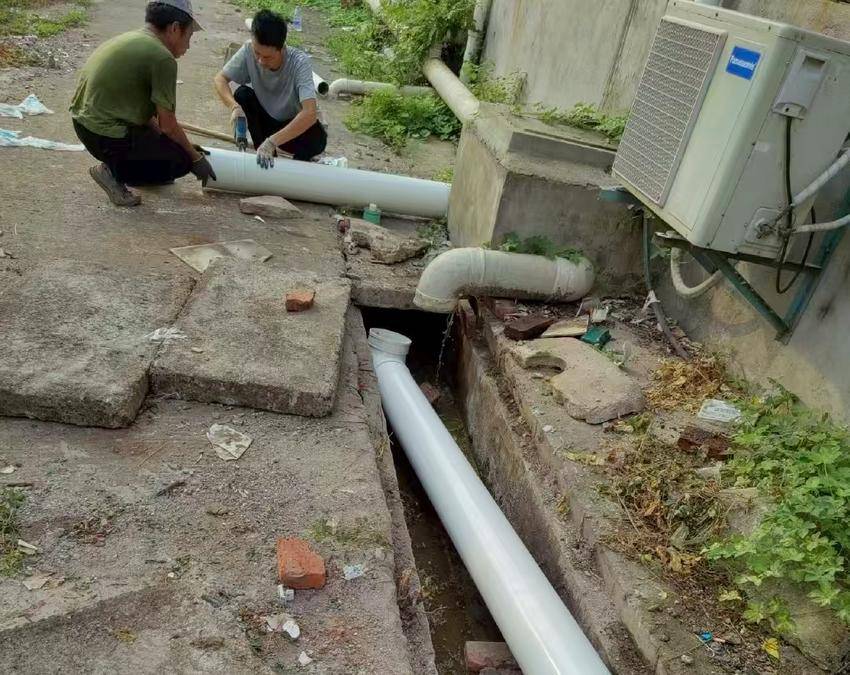 民有所呼,我必有应。雷公镇党委政府连夜部署,综合执法中心立即联系专业维修队。8月6日清晨,施工人员已冒着异味展开作业。面对50米破裂管网,团队精准定位漏点,开挖、换管、回填各环节高效衔接。经3小时奋战,管网全面修复,路面恢复整洁。