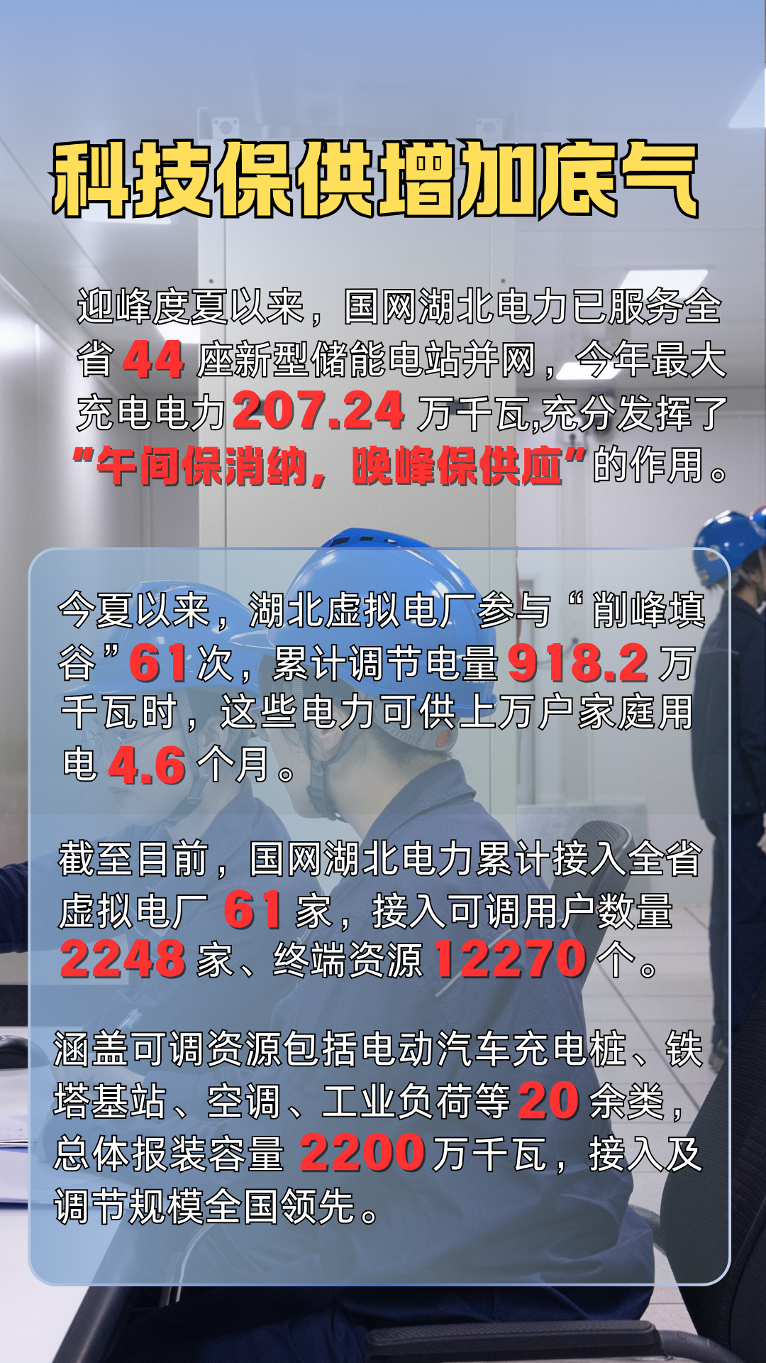 迎峰度夏后半段,电力供应总体有保障。国网湖北电力将持续做好迎峰度夏工作扛牢保供责任,强化科技支撑,全方位守护电网安全稳定运行,为每一度清凉保驾护航。