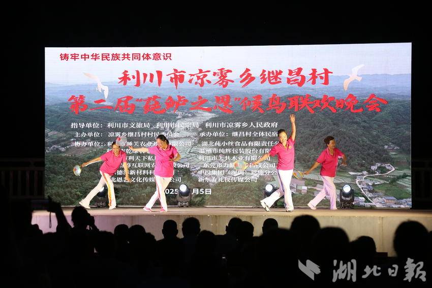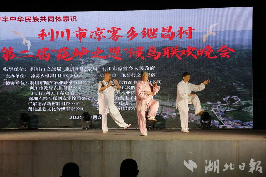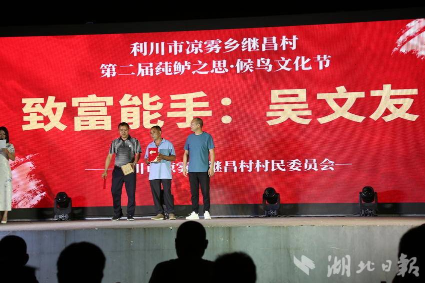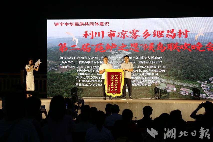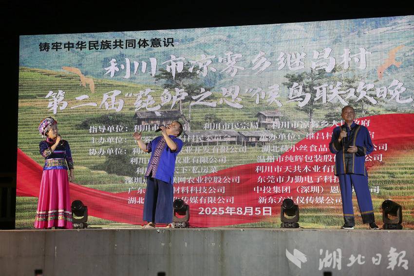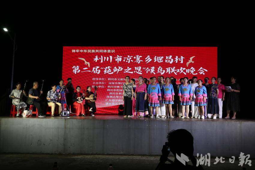 湖北日报客户端讯 (通讯员 李传书、李隆基、杨翠)8月5日晚,来自全国的候鸟们,齐聚在利川“中国莼菜第一村”继昌村,盛大举行“第二届莼鲈之思候鸟文化节”。天空不时下点小雨,虽然淋湿了衣服,但是淋不湿大家的热情,时间从晚上六点半持续到晚九点半。此次活动给当地村民和候鸟们奉献了一台美美的视听盛宴,大家无不拍手叫好。