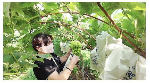 果农吴云群忙着指导大家采摘技巧,看着采摘的人群,他脸上难掩喜悦。阳光玫瑰经济效益高,2021年他试着种了1亩多,这几年摸透了修剪、疏果的门道,今年扩种到3亩,预计每亩收益3万元左右!