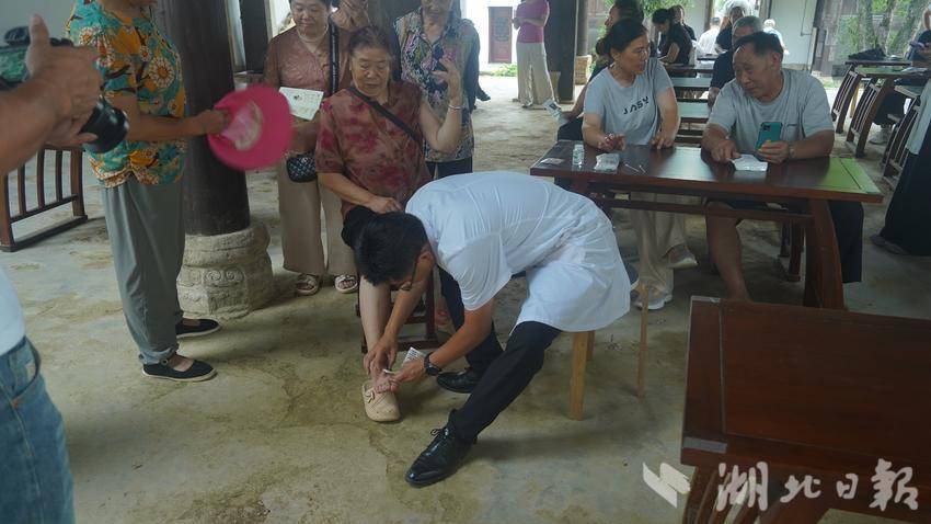 利川市民族中医院门诊主任谭彬讲解了针灸的基本原理和作用,如疏通经络、调和气血等。介绍了针灸在缓解常见问题,如颈肩腰腿痛、失眠、疲劳等方面的应用。并现场为部分有需求的“候鸟”与村民进行了对症的针灸治疗,让大家直观感受到中医的魅力。