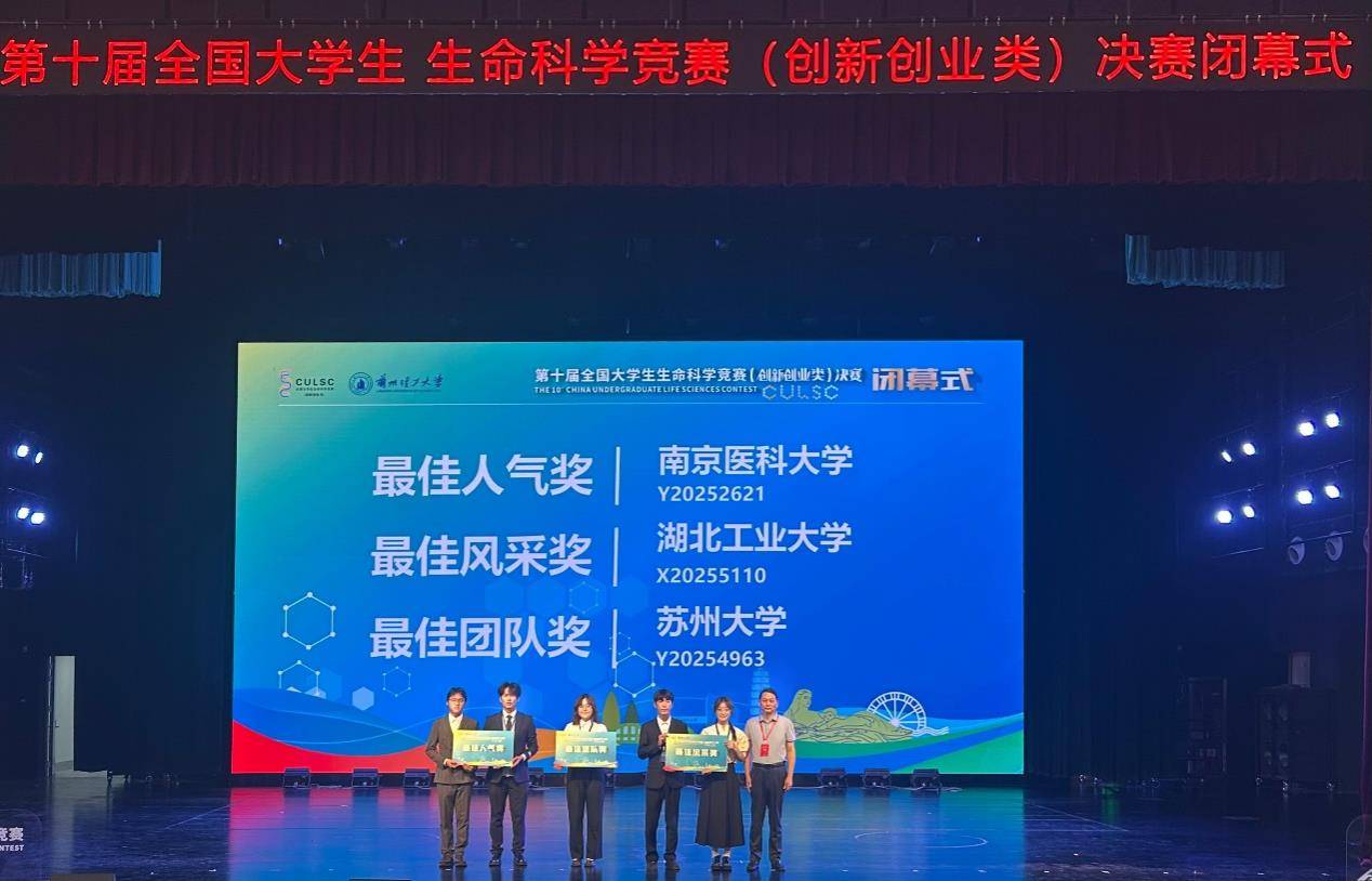 湖北日报讯(记者陈熹、通讯员陈凌)7月27日,第十届全国大学生生命科学竞赛(创新创业类)在甘肃兰州落幕,湖工大生命科学与健康工程学院团队斩获全国一等奖1项、全国三等奖4项。其中,《莲房原花青素在抗糖化食品的创新应用》项目获全国一等奖,并作为6支优秀代表团队之一在闭幕式上展示,获“最佳风采奖”。