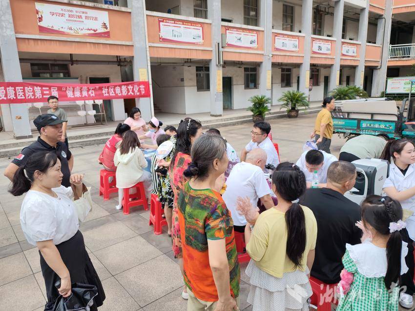 湖北日报客户端讯(通讯员周沁卉)8月6日傍晚,黄石爱康医院第三届“健康黄石”社区电影文化节的脚步来到了袁海湾社区的马家嘴小学,为这里的居民们带来了一场集健康关怀与文化享受于一体的温馨活动。