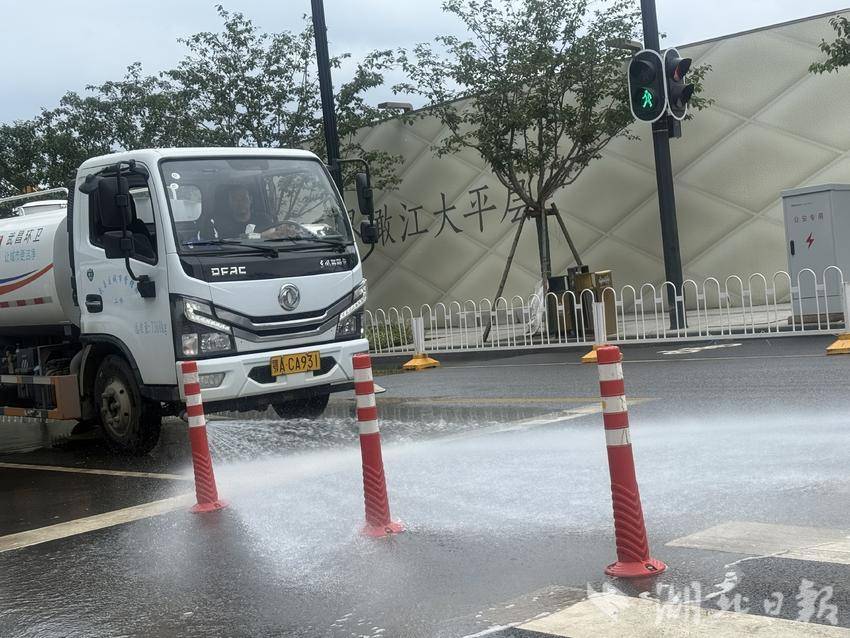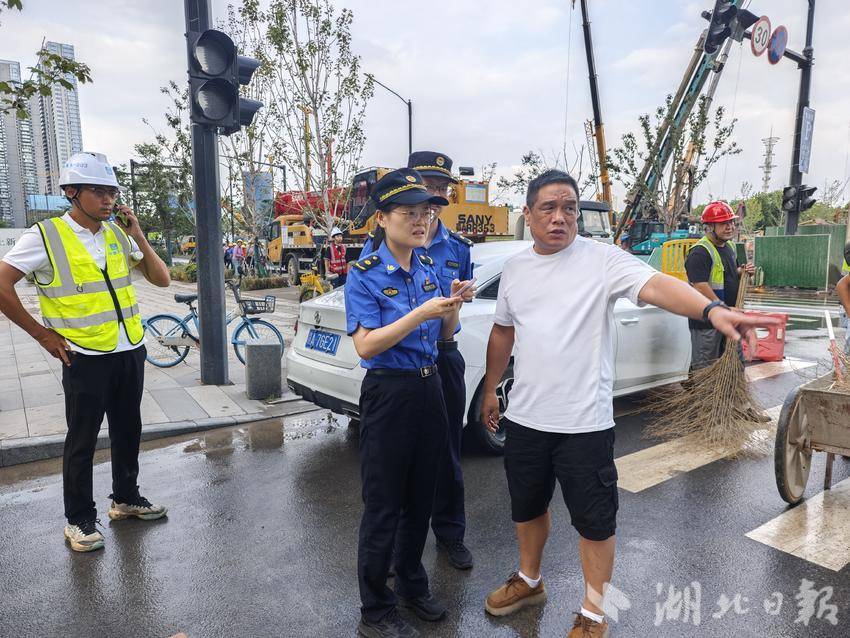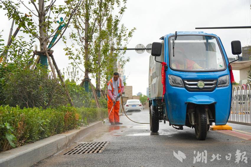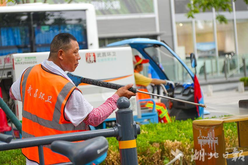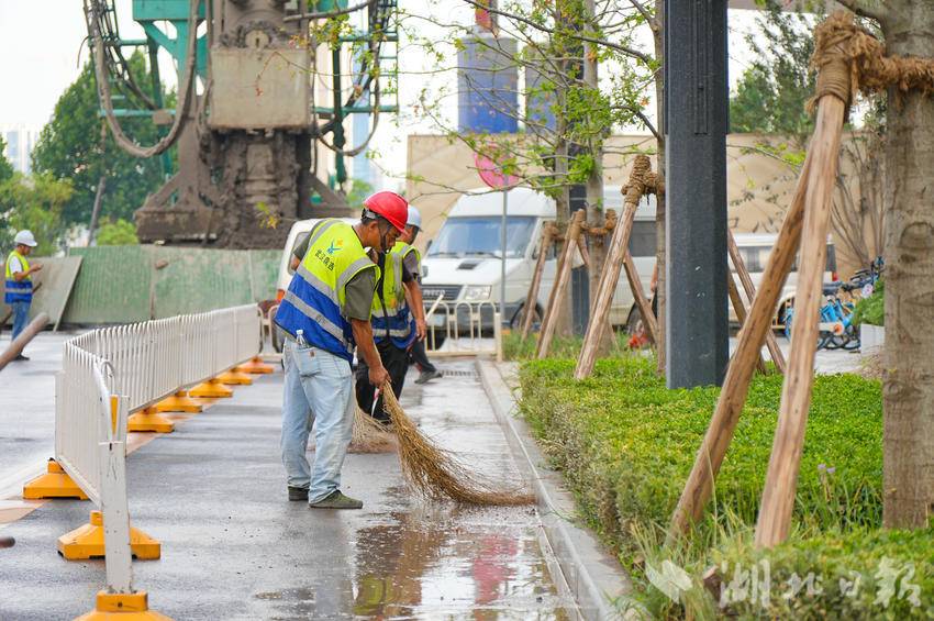 武昌区城管执法局二桥清洁队队长付国炬介绍,针对施工企业缺乏专业环卫设备与作业经验的问题,清洁队组建由50名党员、业务骨干组成的突击小队,调配高压冲洗车、洗扫车等专业设备,同步指导施工方开展清洁作业。