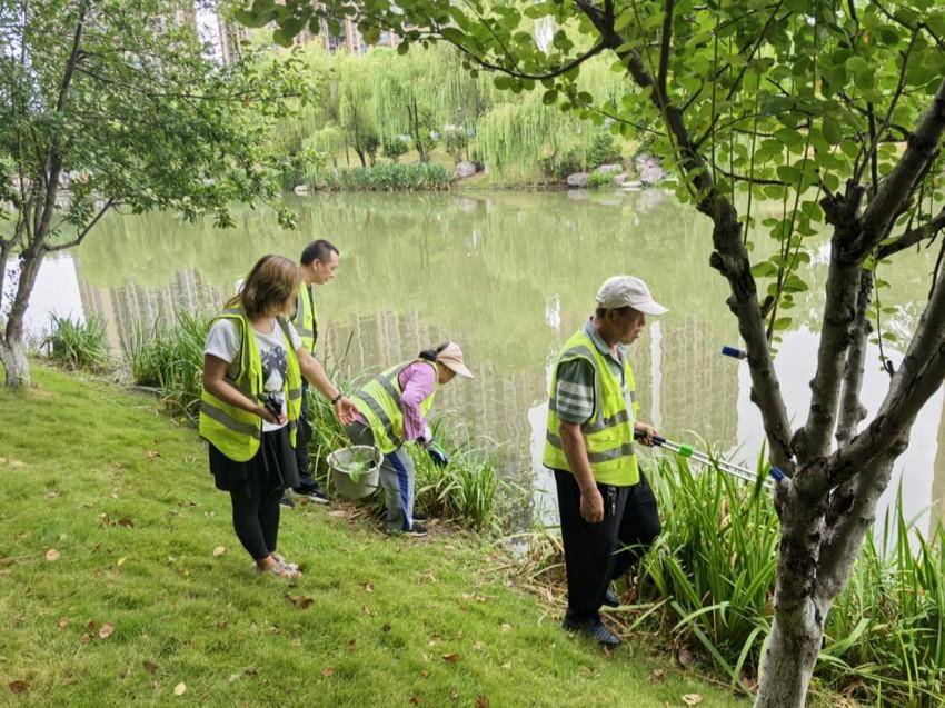 清理过程中,队员们分工协作,利用长杆、网兜、夹子等工具清除福寿螺成体,并重点铲除附着在石块、水生植物上的鲜红色卵块。为避免二次污染,所有打捞的螺体及卵块均统一装袋,进行无害化处理。经过连续3小时奋战,累计清理福寿螺30余公斤、卵块200余处,东湖港沿岸生态环境得到明显改善。