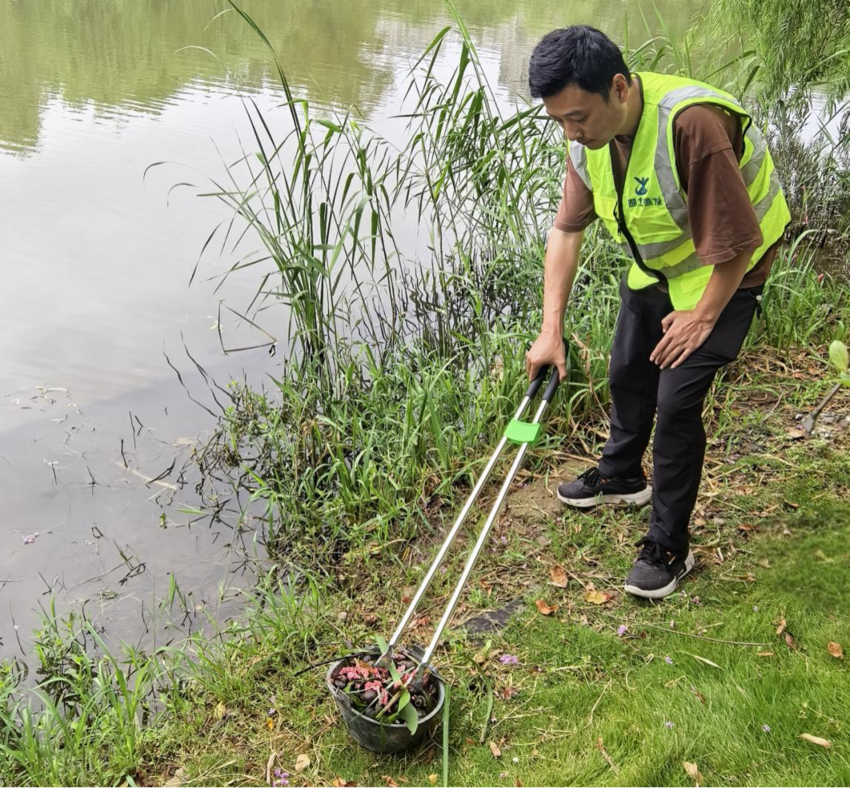 今年7月,源发公司被青山区河湖长办公室正式聘为东湖港“民间河湖长”,成为政企联动共治水生态的重要社会力量。福寿螺作为外来入侵物种,繁殖力强且对水域生态环境破坏严重,其卵块附着在河岸植物及堤坝上,不仅影响景观,还可能威胁本地物种生存。为此,源发公司主动制定清理计划,由总经理程博和20余名员工组成志愿小队,携带工具沿东湖港河道两侧展开“地毯式”排查与清理。
