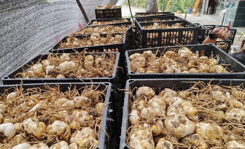 湖北日报客户端讯(通讯员黄旖旎)八月骄阳似火,兴山县黄粮镇火石岭村迎来丰收时节。村里规模化种植的80亩特色农产品——龙山卷丹百合喜获丰收。田野间,农户们正忙着采收一颗颗饱满的百合鳞茎,空气中弥漫着独特的清香。这不仅是村民增收的“金疙瘩”,更是兼具独特风味与显著药用价值的山间珍宝。