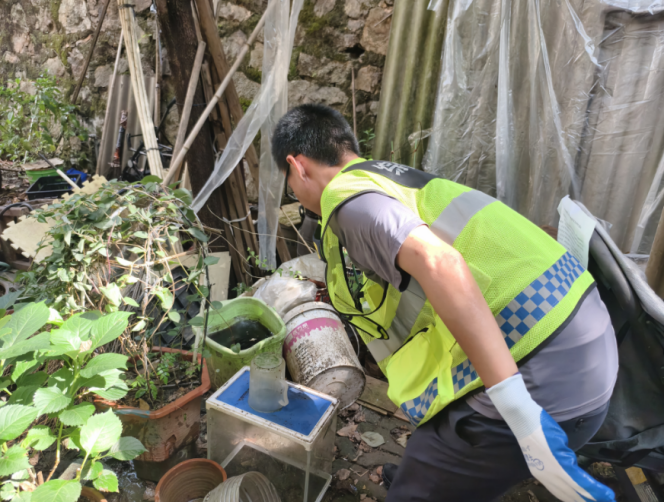 同时,工作人员积极开展基孔肯雅热、登革热预防宣传工作,尤其针对喜好养花的居民,入户一对一讲解防蚊灭蚊知识、疾病症状识别要点及居家防护措施(如及时清理家中积水、安装纱窗纱门、正确使用驱蚊产品等),引导居民主动参与环境维护。