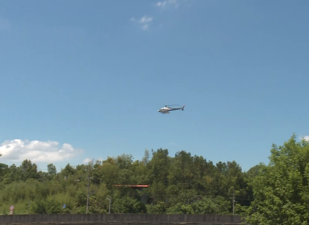 松褐天牛(昆虫)是松材线虫传播的生物媒介。在绿杨乡作业现场,搭载环保型农药生物制剂的直升机来回对马尾松林进行精准喷洒,每二十分钟往返一次。河南美盛通用航空有限公司项目经理牟建国:本次作业任务从7月23日起持续到7月24日,共计两天,总共飞行了35架次。在保证飞防质量的前提下,对防空区域的图斑进行了精准的全覆盖。