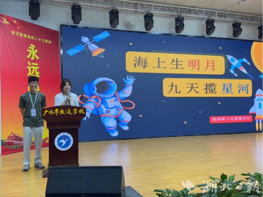 湖北日报客户端讯(通讯员任富娆、王丽婷)近日,来自宜昌的武汉晴川学院励励晴川志愿服务队志愿者走进广水市致远学校,开展以“古今对话探苍穹”为主题的航天公开课。志愿者宋灿灿、刘成茂通过讲述古人的飞天幻想、展现中国航天成就以及指导水火箭实践,为学生们呈现了一堂生动的航天科普课。