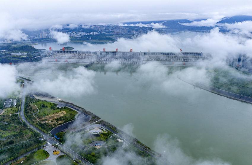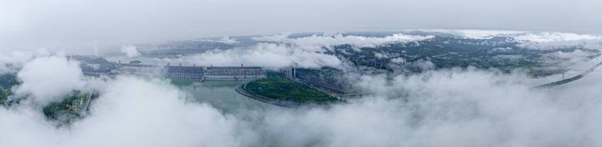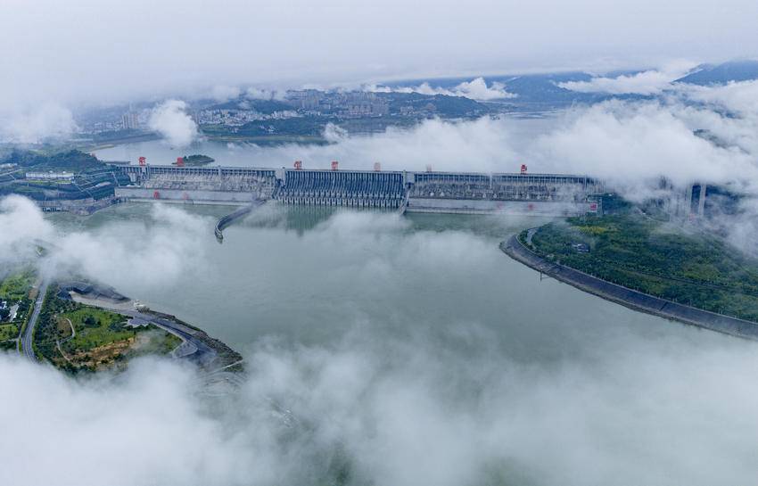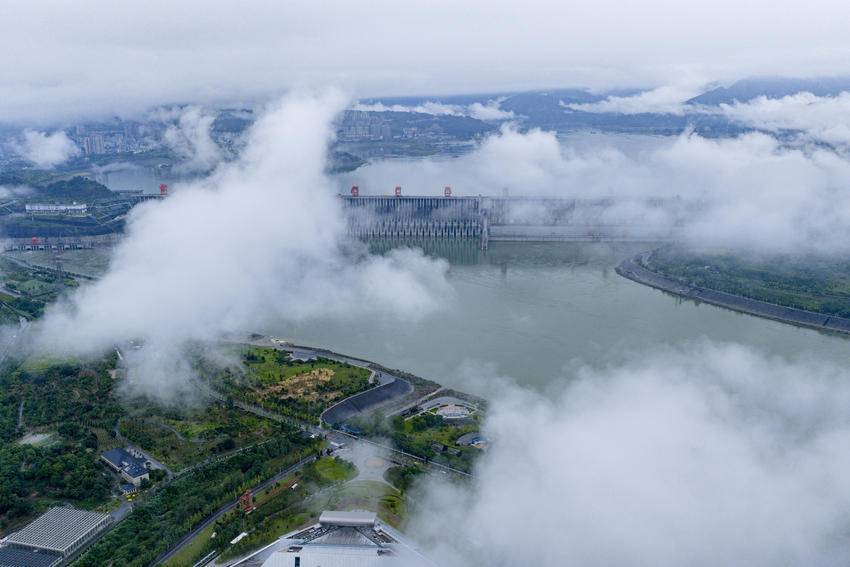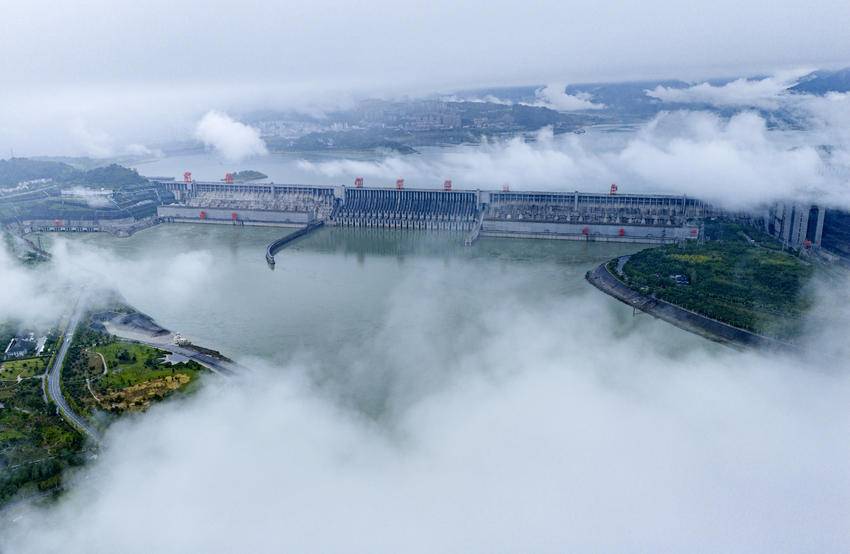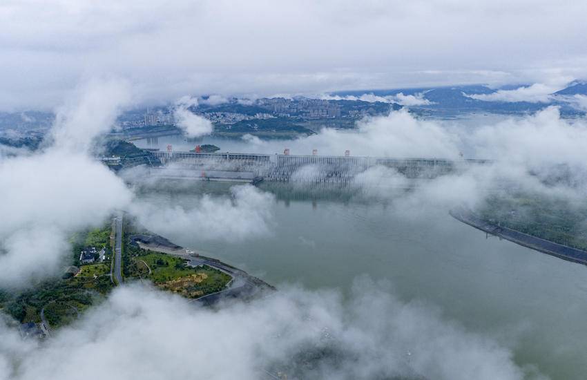 湖北日报客户端讯(通讯员吴承忠)8月10日,湖北省宜昌市三峡坝区烟雨蒙蒙,云雾缭绕,三峡大坝掩映其中,宛如仙境,美若画卷。
