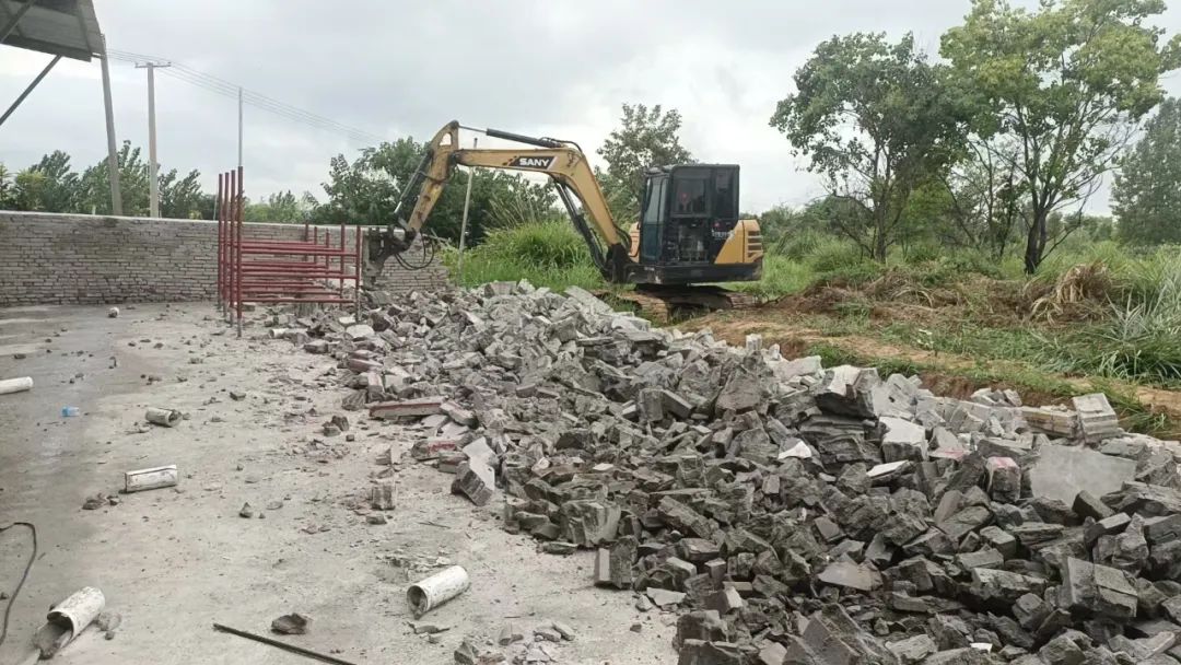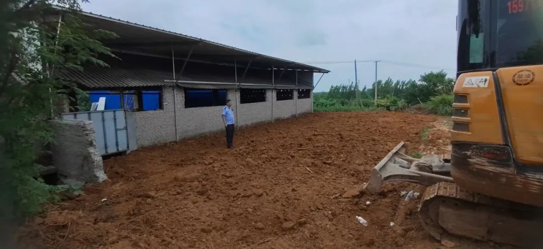8月8日,在团风县团风镇综合执法中心现场监督下,该处非法占用基本农田修建的牛棚,当事人已自行拆除,所侵占基本农田,覆土恢复原貌。