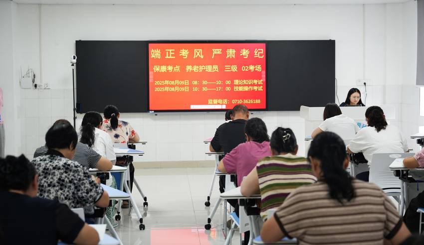 湖北日报客户端讯(通讯员郑芳)8月9日,保康县养老护理员结业考试在县人民医院教学培训中心圆满完成。本次考试由县人力资源和社会保障局主办,采用理论笔试与实操考核相结合的方式,严格遵循国家职业标准,为全县养老服务行业选拔专业人才奠定了坚实基础。