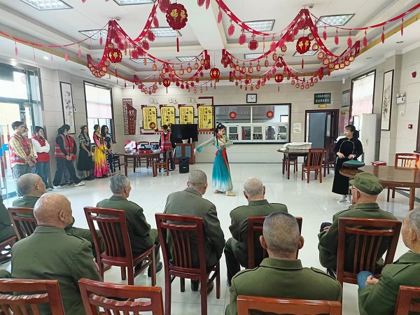 民乐社团开展艺术进课堂活动,多种歌舞、乐器进入各种艺术课堂,激发各族学生学习兴趣,促进各族学生交往交流交融,在国风流行、民族歌舞、赏析演讲等方面才能各展其能。民乐社团、石榴红艺术团举办专场汇报、表演活动,质量与水平不断提高。在孝感市文昌阁社区、沙沟社区等开展乐器培训、表演活动,并形成常态机制。在孝感市儿童福利院、市特校等举办专场音乐会,非洲鼓、手鼓培训等活动。在孝感市光荣院、孝南区光荣院、各社区养老院等开展慰问演出,陪伴老人们做手工等。推进送教下乡,助力乡村振兴。推广传统诗词《游子吟》《悯农》手语歌唱表演等,弘扬中华孝文化,受到各界认可。