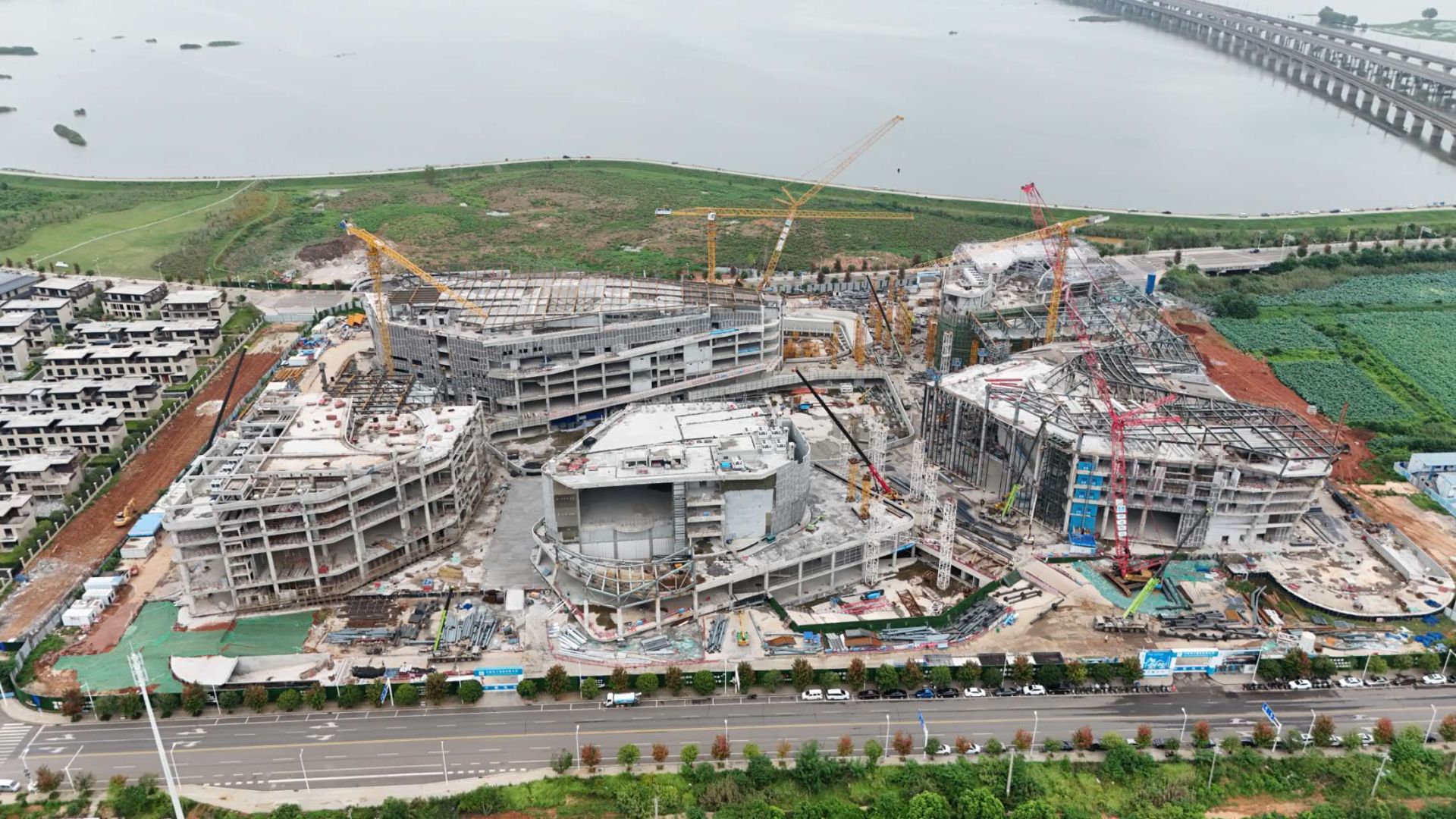 “目前项目主体结构已封顶,整体进度完成75%,正同步进行外立面幕墙、屋盖钢结构及室内机电施工。”中建科工大冶市新时代文明实践综合体项目现场负责人潘升介绍道。