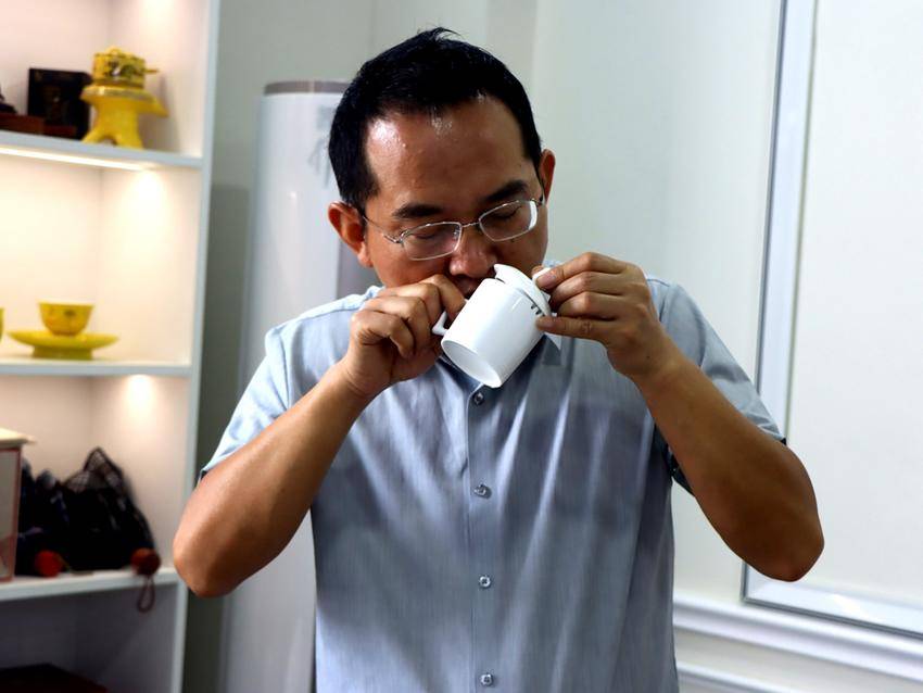 黄友谊边进行汤色、香气、滋味、叶底等内质专业评审边介绍说:“要看汤色的深浅、明暗、清浊,比如绿茶应该是嫩绿、明亮;红茶红艳、明亮;乌龙茶金黄或橙黄,清澈。香气需要分热嗅、温嗅、冷嗅。热嗅判断是否有异味、杂味;温嗅判断香气的类型和高低;冷嗅看香气的持久性。香气类型比如清香、栗香、花香、蜜香等。滋味是核心,需要小口啜饮,让茶汤在口腔中流动,感受鲜爽度、醇厚度、苦涩回甘、协调性。好的茶滋味饱满,层次感强,苦涩能快速化开,回甘明显。叶底需要展开后看嫩度、匀度、色泽、厚度等。”
