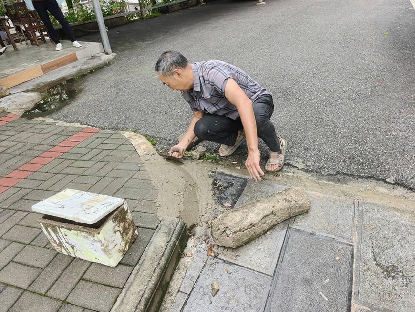 网格员在核查情况后第一时间反馈给社区分管人员并联系维修人员,全力更换下水道井盖、修复破损台阶。居民看到后也纷纷自发加入,帮忙修复。