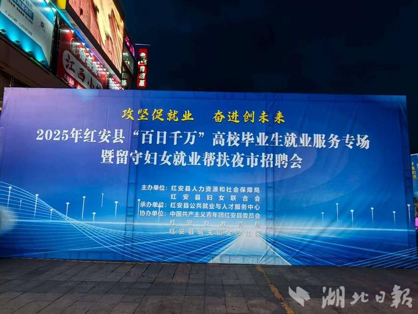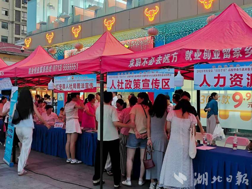 湖北日报客户端讯(通讯员:陈骞、罗静)8月8日晚,由红安县人力资源和社会保障局、红安县妇女联合会主办,红安县公共就业与人才服务中心承办,中国共产主义青年团红安县委员会、红安县教育局、红安县城关镇金沙社区协办的红安县“百日千万”高校毕业生就业服务专场暨留守妇女就业帮扶夜市招聘会在沃尔玛盛地广场成功举办。