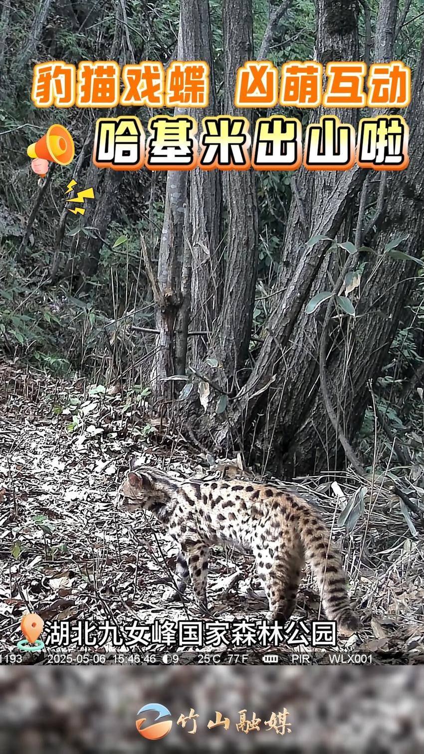 豹猫戏蝶,凶萌互动,哈基米出山啦