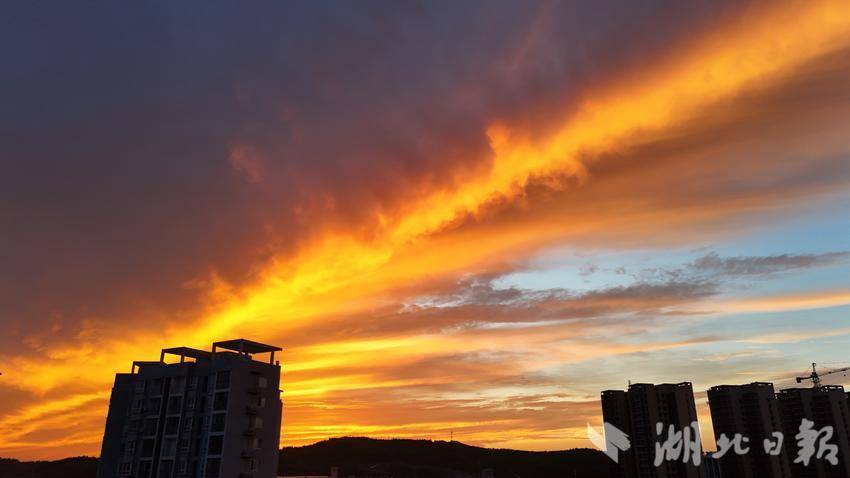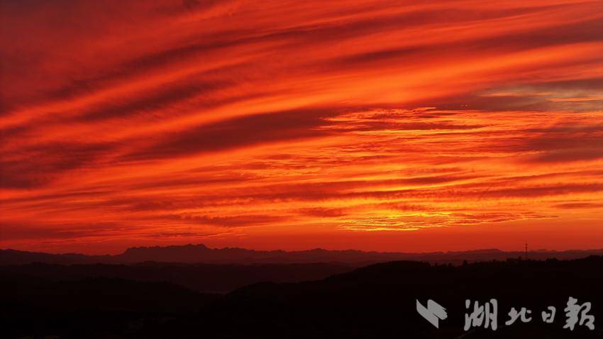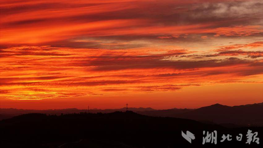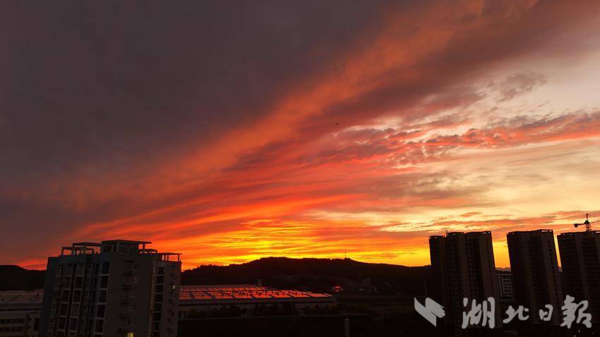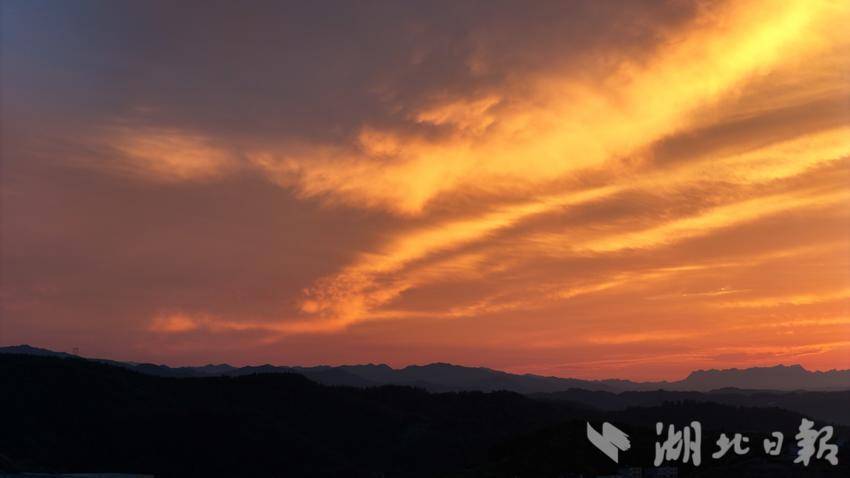 湖北日报客户端讯(通讯员王涛)8月11日,郧阳区雨后初晴,傍晚,天空出现了绚丽的火烧云景观,火红的彩霞映红了整片天,宛如童话世界。
